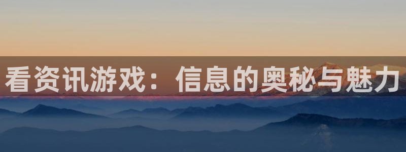 星欧娱乐注册登录平台:看资讯游戏:信息的奥秘与魅力